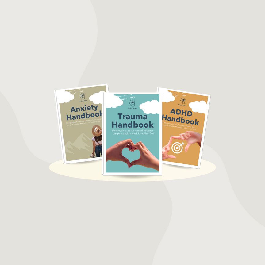 Buku yang bisa kamu isi sendiri untuk meregulasi emosi kamu secara mandiri, seperti Trauma, Anxiety, dan ADHD Handbook